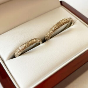 Faktūros dėka ant šių žiedų mažiau nei ant klasikinių žiedų matysis pabraižymai, tad tokio dizaino žiedai ilgiau išsaugo savo pirminę išvaizdą.