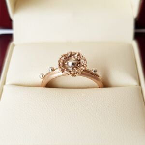 RAUDONO AUKSO ŽIEDAS “GĖLĖ”
