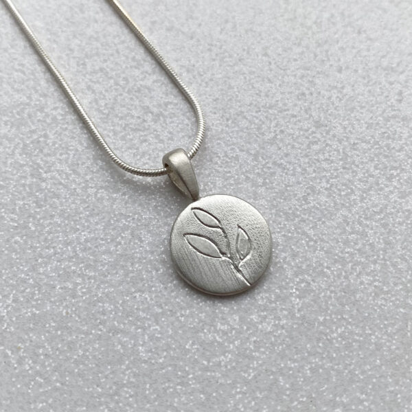 KAKLO PAPUOŠALAIAugalinių motyvų pakabukas iš sidabro. Grandinėlė įtraukta į kainą (galite rinktis 42 arba 45 cm ilgio).