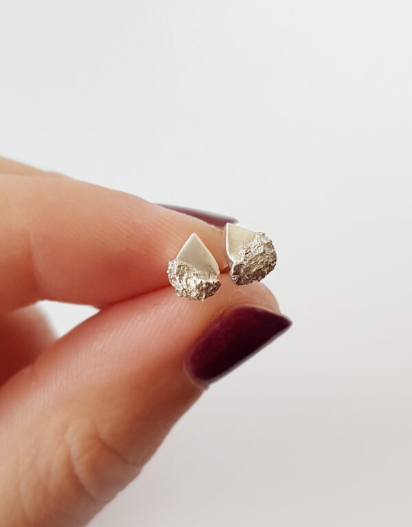 Miniatiūriniai auskarai “Sugar drop”, pavadinti cukraus lašais dėl to, kad šių auskarų gamybai panaudojau tikrą cukrų, tą patį, kurį dedame į arbatą ar kavą.