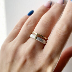 GALERIJAIndividualus užsakymas, raudono ir balto aukso žiedas (raudono aukso pagrindas, balto aukso burbuliukai bei apsodas aplink briliantą), briliantas.