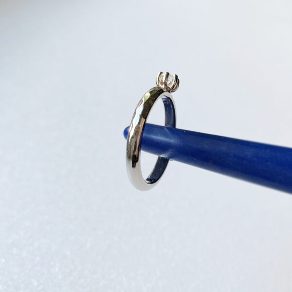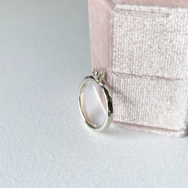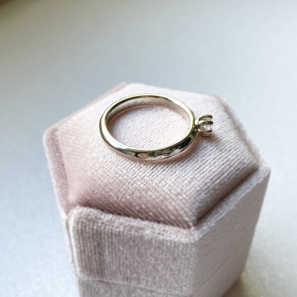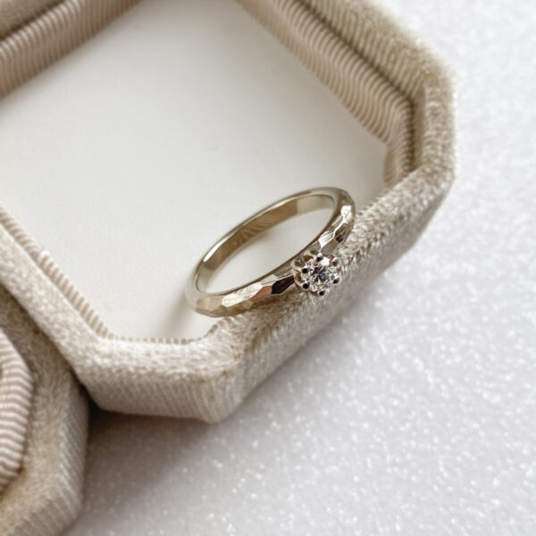 Sužadėtuvių žiedas su 0,135 ct deimantu, kiek netradicinis ir subtiliai kitoks.