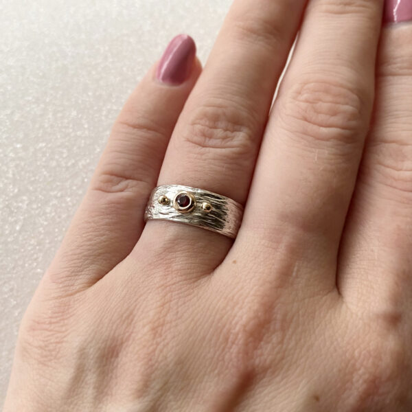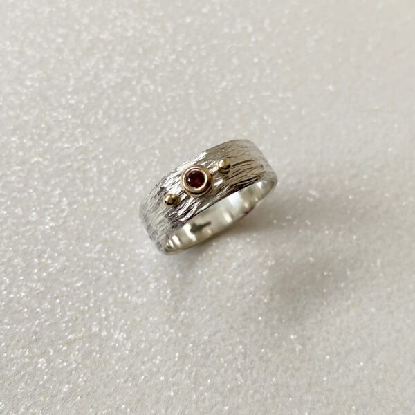 ŽIEDAIŽiedas su aukso burbuliukais ir granatu.