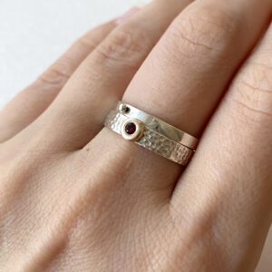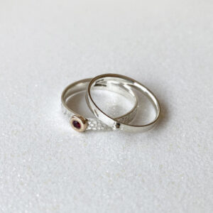 Dviejų kontrastuojančių žiedų komplektas, pagaminta iš sidabro, puošta auksu bei juoduoju deimantu.